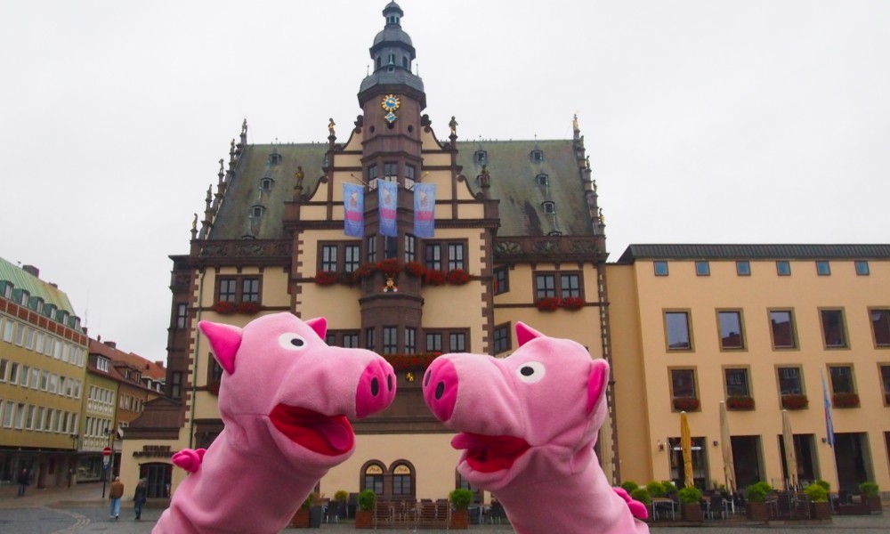Die Schweine erklären, dass sie aus dem Rheinland kommen.