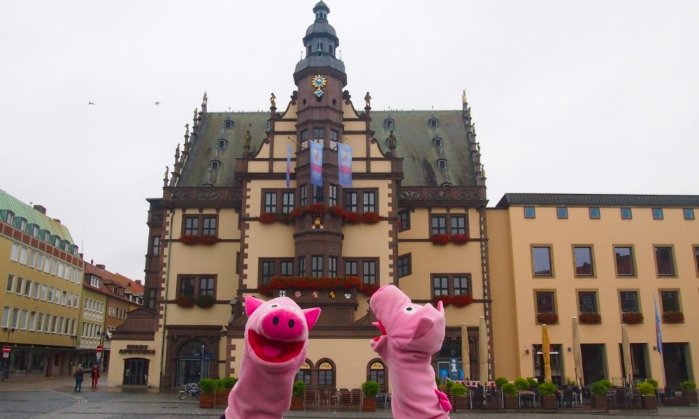 Am Rathaus überlegen die Schweine, ob sie sich direkt für dieses Semester einschreiben.