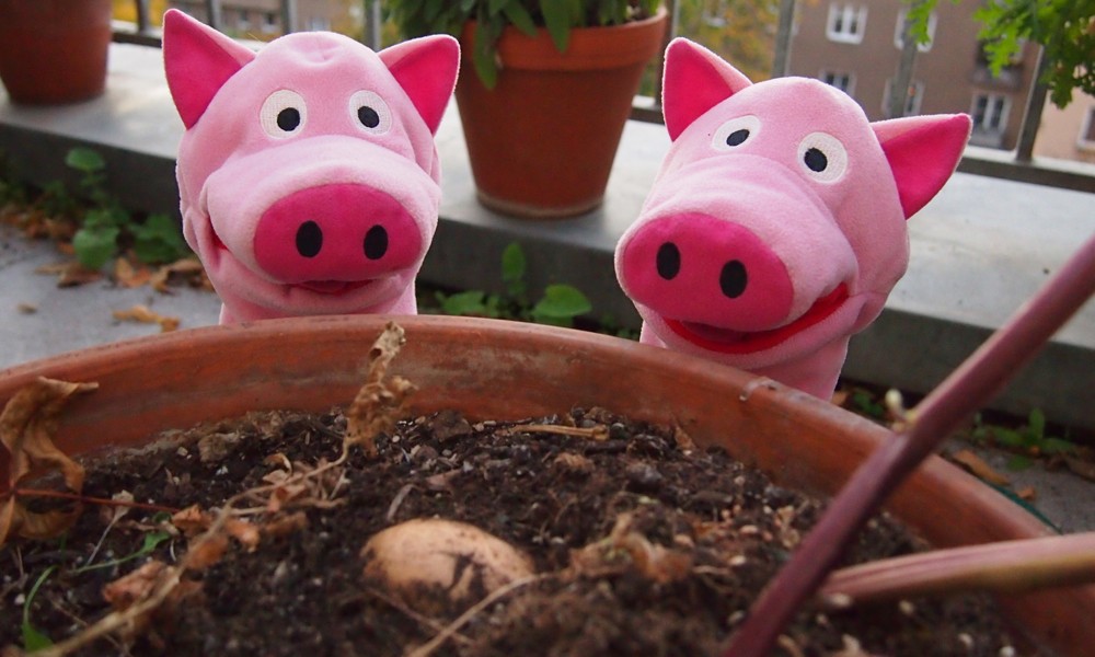 Die Schweine waren sehr traurig, als ihre Kartoffel verblüht war. Sie hatten die Kartoffel nämlich zu Weihnachten geschenkt bekommen. Dann gab es aber eine schöne Überraschung.