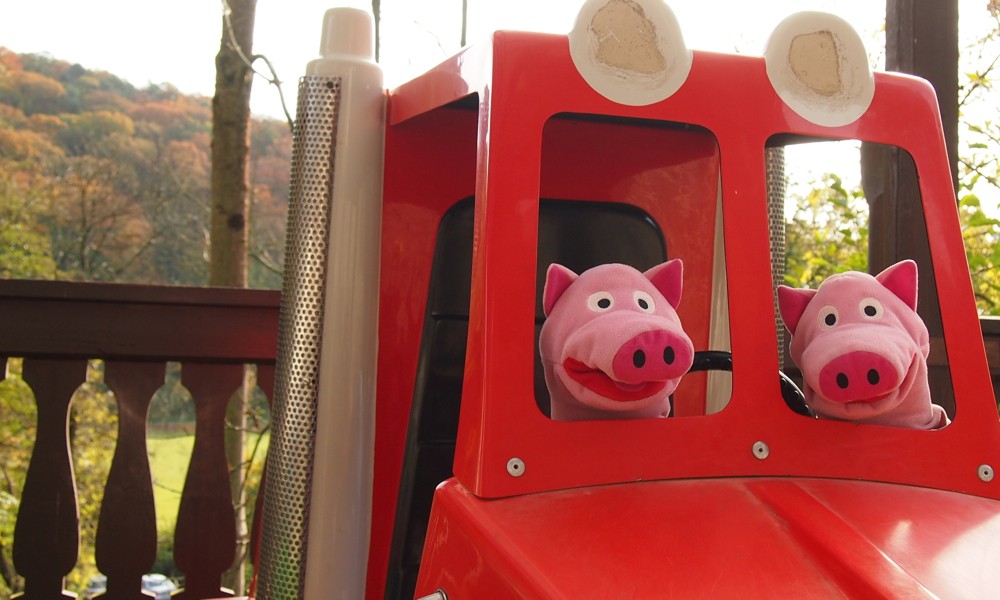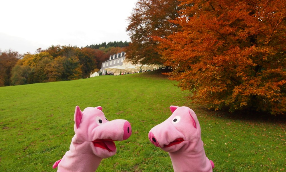 Die Wanderwege im Bergischen sind bestens ausgeschildert. Den Schweinen wird schwindelig.