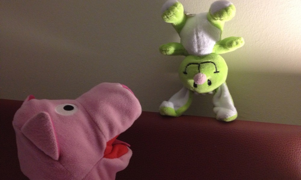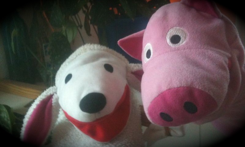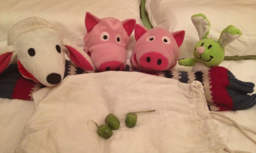 Zusammen gehen die Schweine Spazieren und treffen ein Bärenkind.