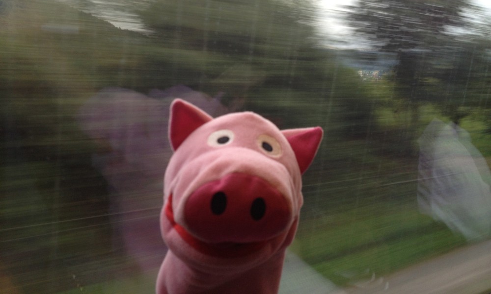 Schwein unterwegs mit dem Zug: hier durch Frankfurt ...