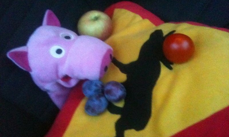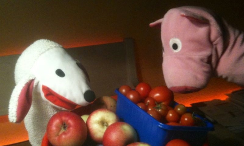 Unterdessen bringt das Autoschwein frisches Obst und Gemüse.