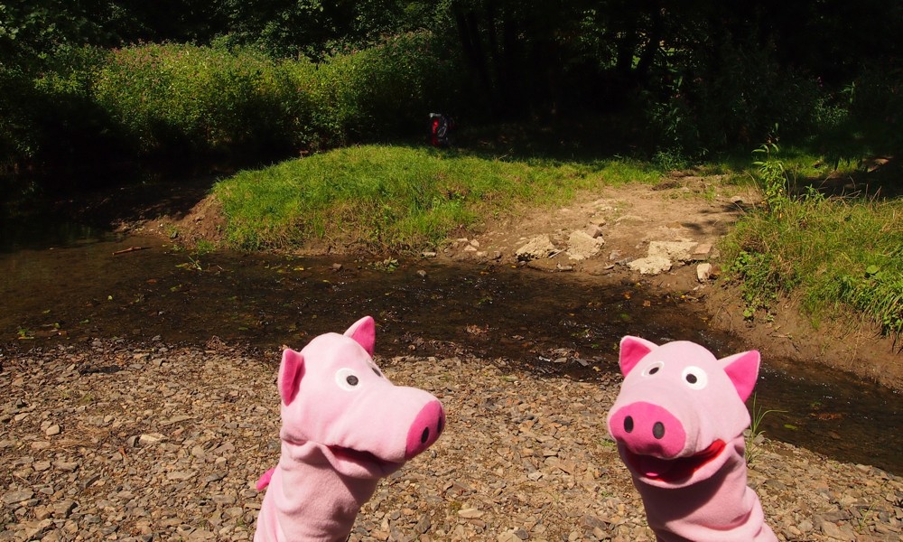 Schweine an der Naaf mit Furt = Schweinfurt