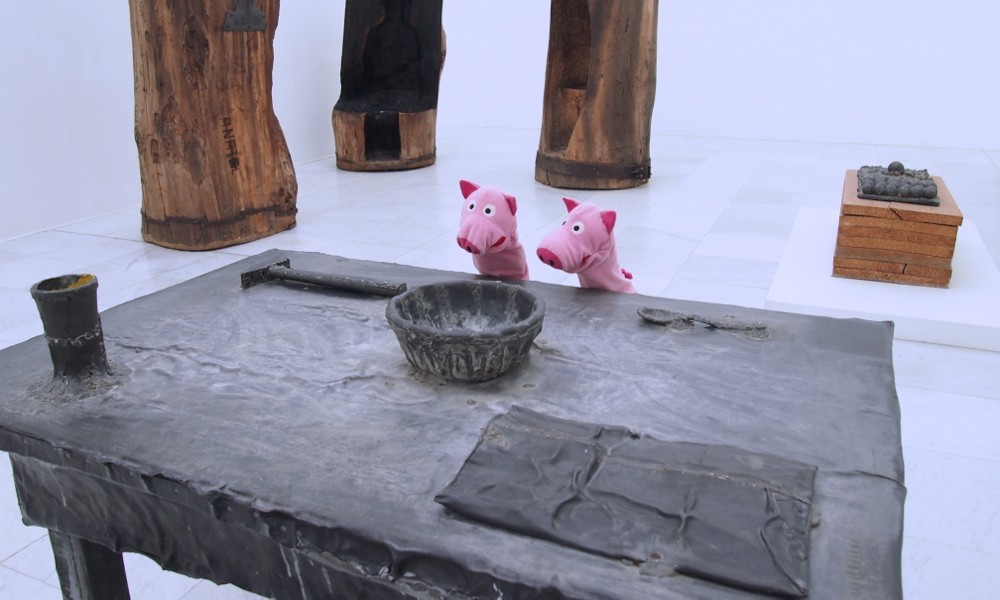 Die Schweine freuen sich immer wieder über freundliche Personen in der Kunst.