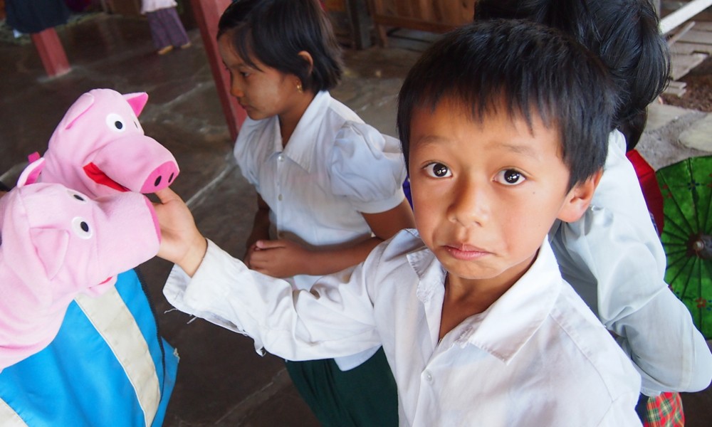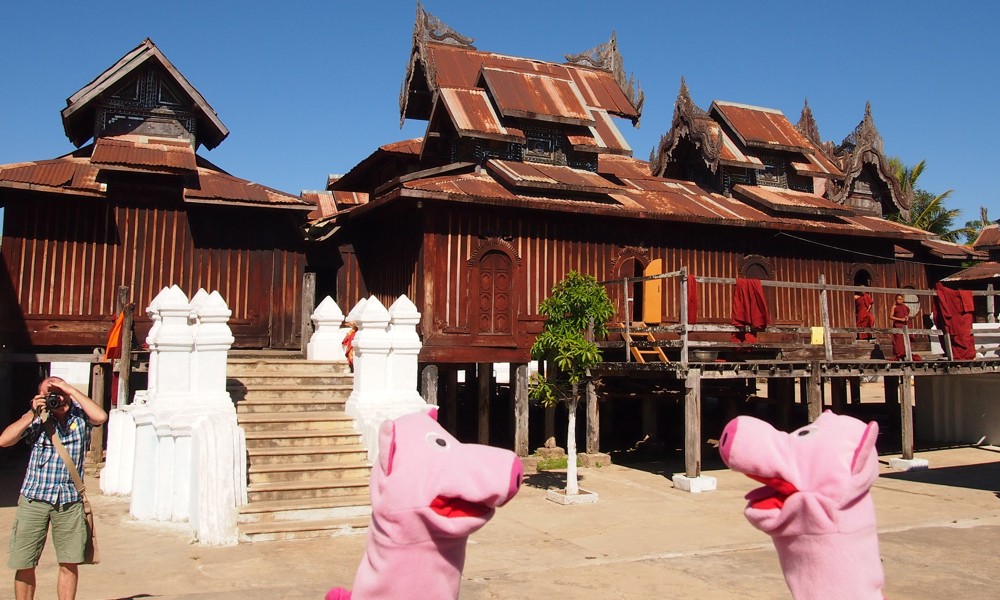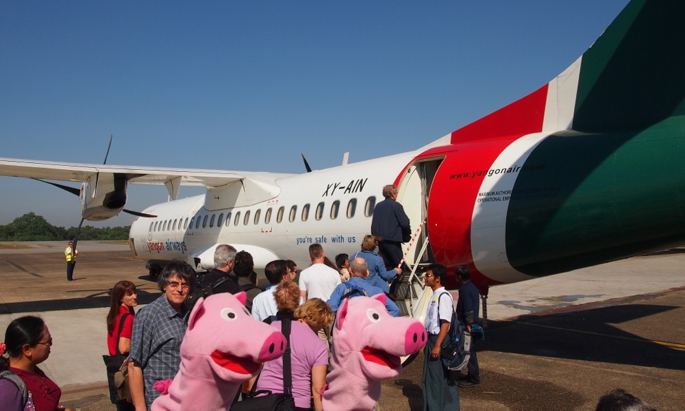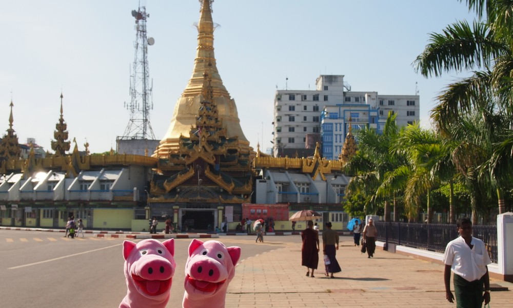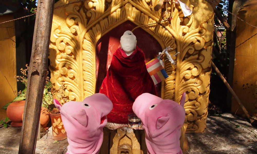 Viele Burmesen tun so, als hätten sie noch nie Schweine auf Reisen gesehen.