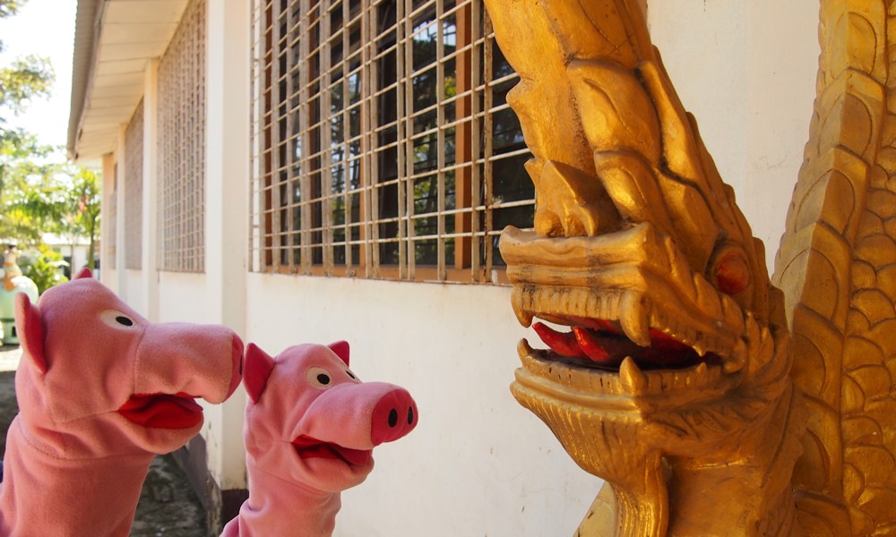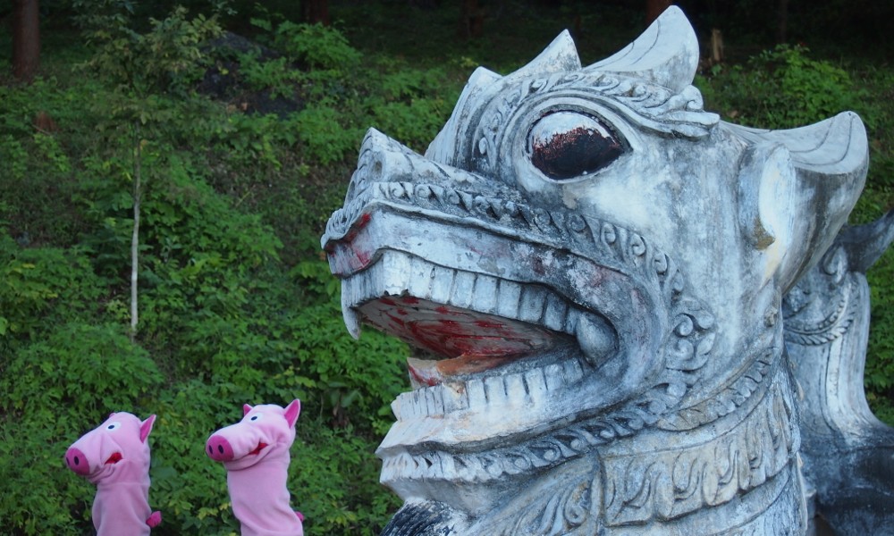 An einem buddhistischen Kloster wurden die Schweine von Papparazzi entdeckt.