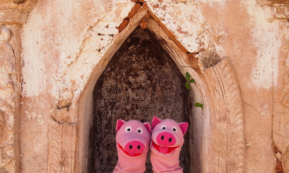 Eine Bootsfahrt führte die Schweine in einen Tempel...