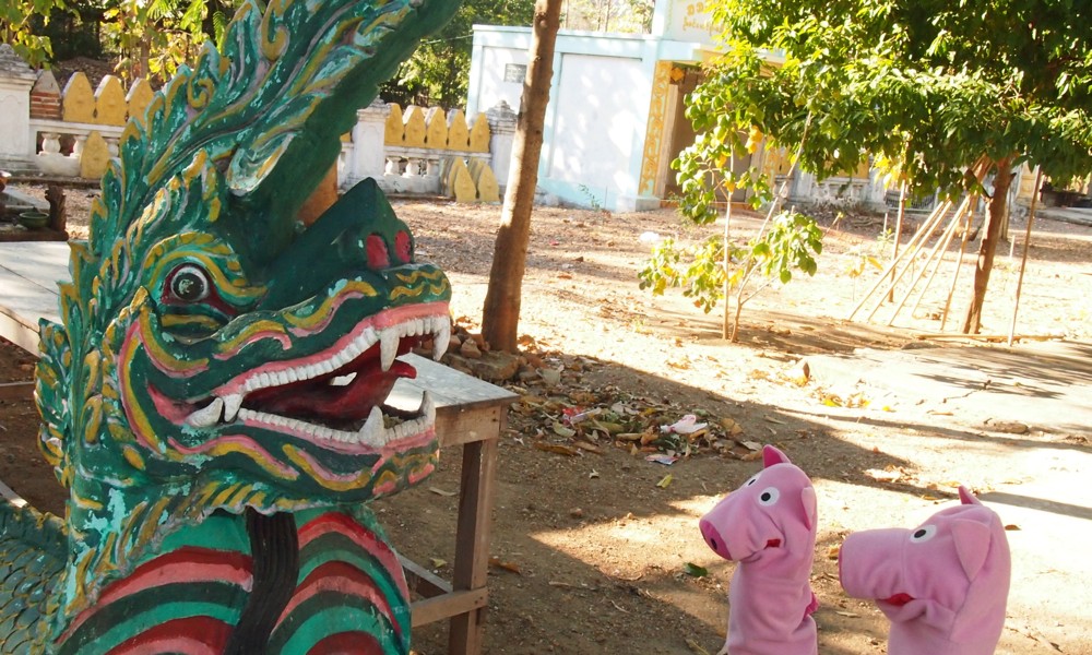 Am Königspalast überlegen die Schweine, ob sie vielleicht auch mal ein paar Verrenkungen einstudieren.