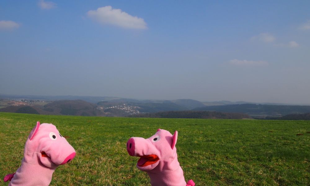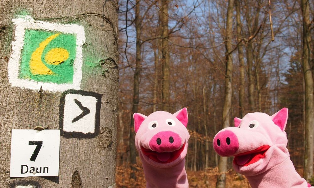 Draußen ist es aber schöner. Schweine auf dem Eifelsteig!