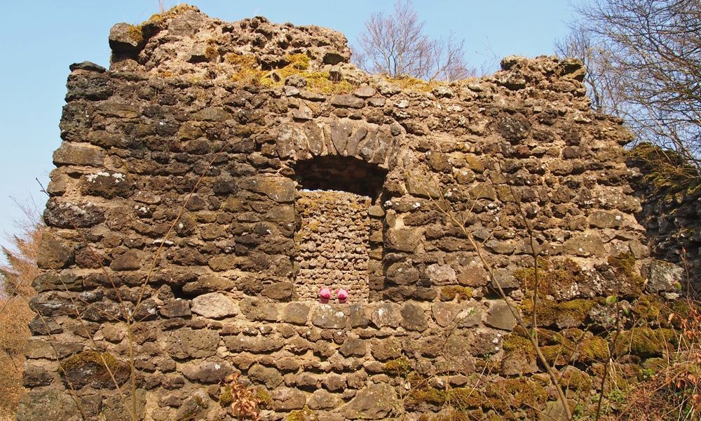 Die Schweine informieren sich über die Burgruine auf dem Nerother Kopf...