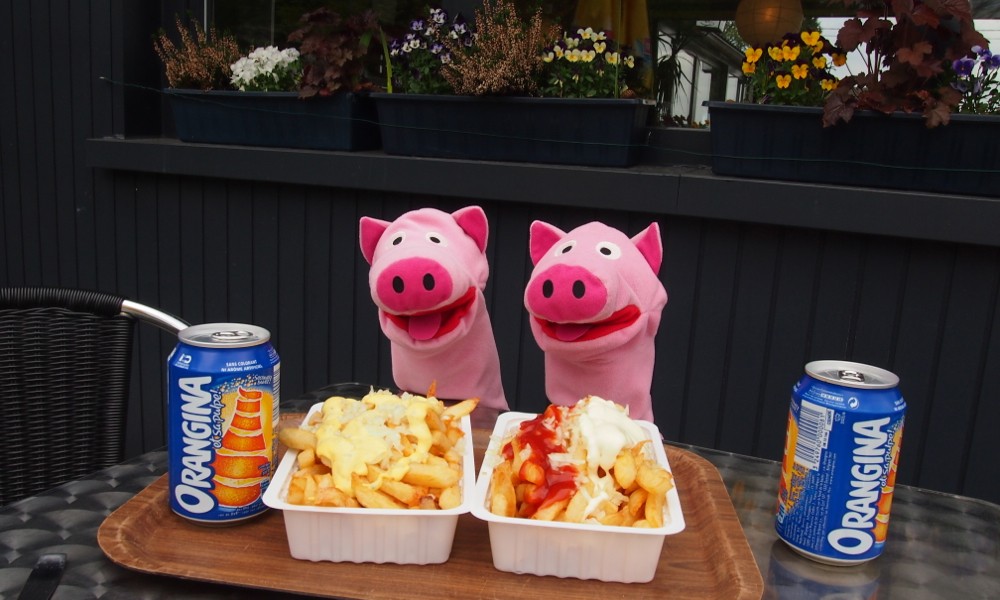 Die Schweine genießen Kartoffeln in feinster belgischer Tradition.