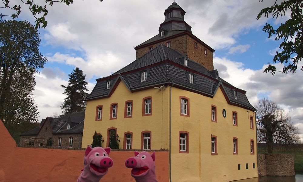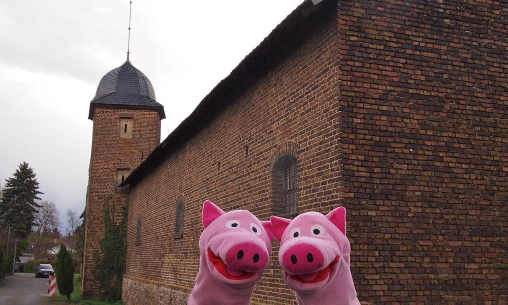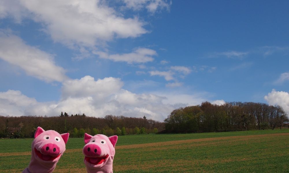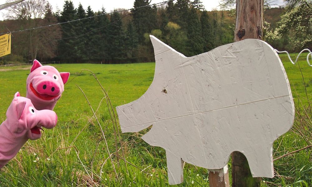 Im nächsten Dorf erzählen die Schweine, dass sie gerade aus Schweinheim kommen.