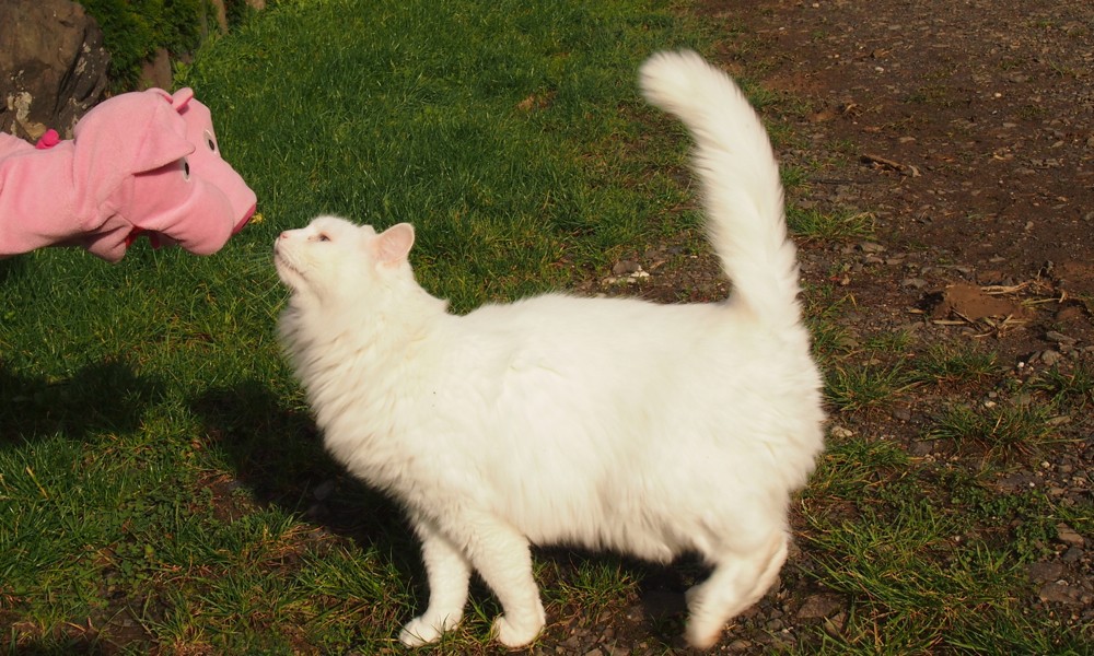 Große Freude, denn die Schweine treffen Steffi aus Zollstock.
