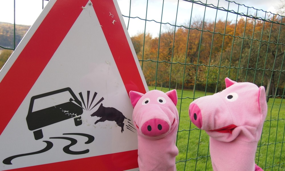 Die Schweine erkundigen sich, ob hier viele Unfälle passieren.