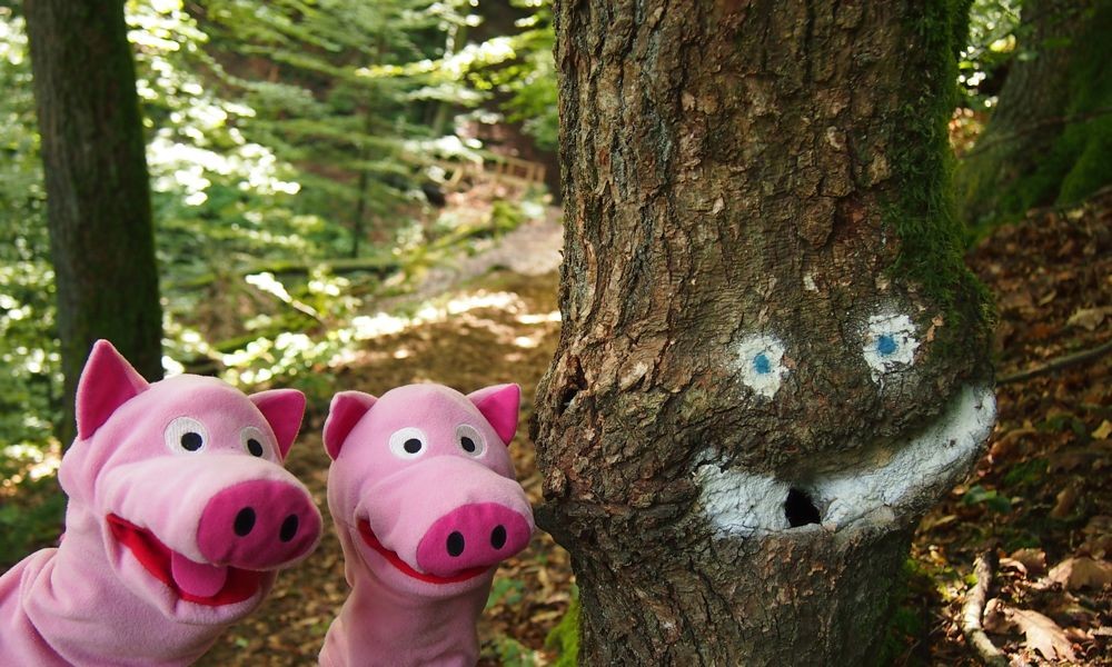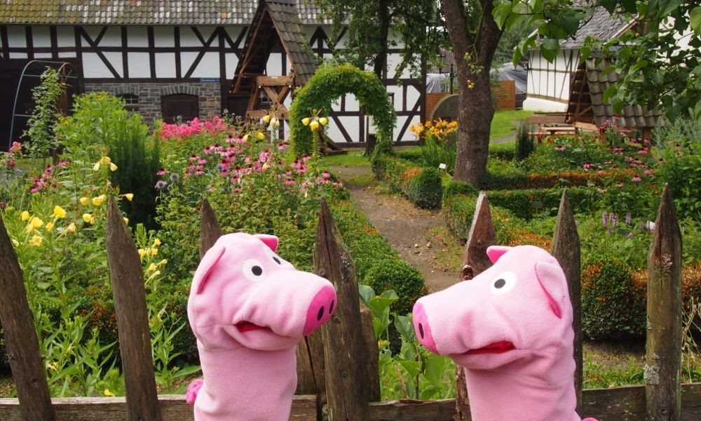 Hier sind die Schweine am Heimatmuseum angelangt.