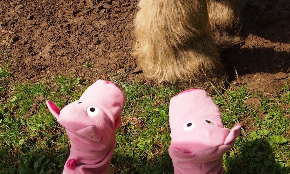 Hier bewundern die Schweine die schicken Schuhe eines Pferdes. Sehr elegant.