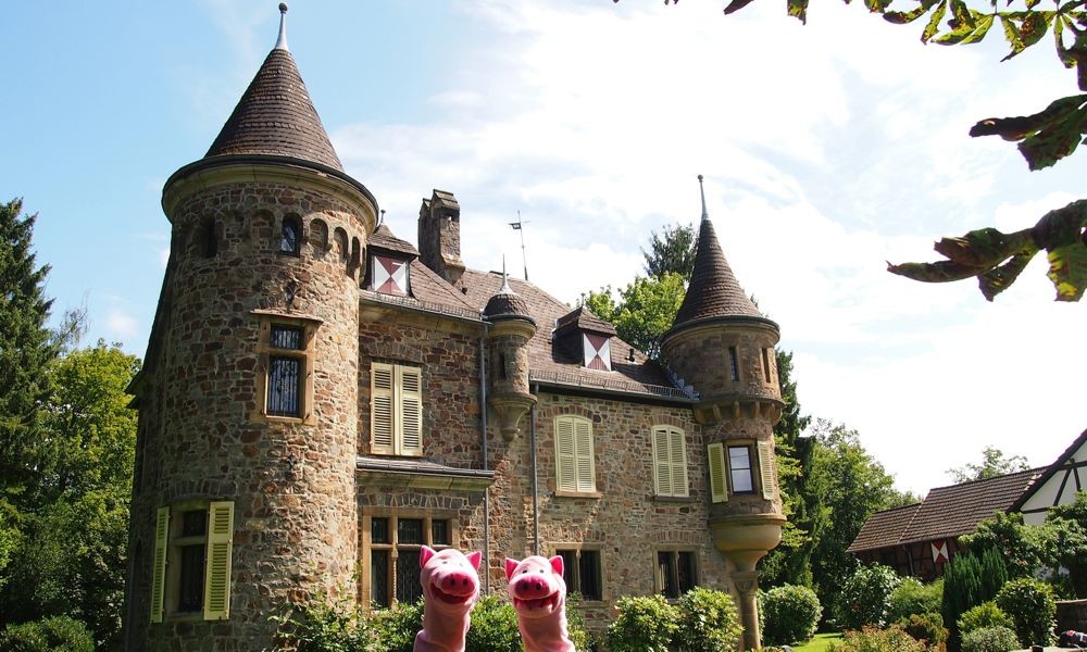 Die Schweine vor Burg Dattenfeld an der Sieg. Das ist doch standesgemäß!