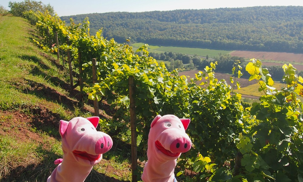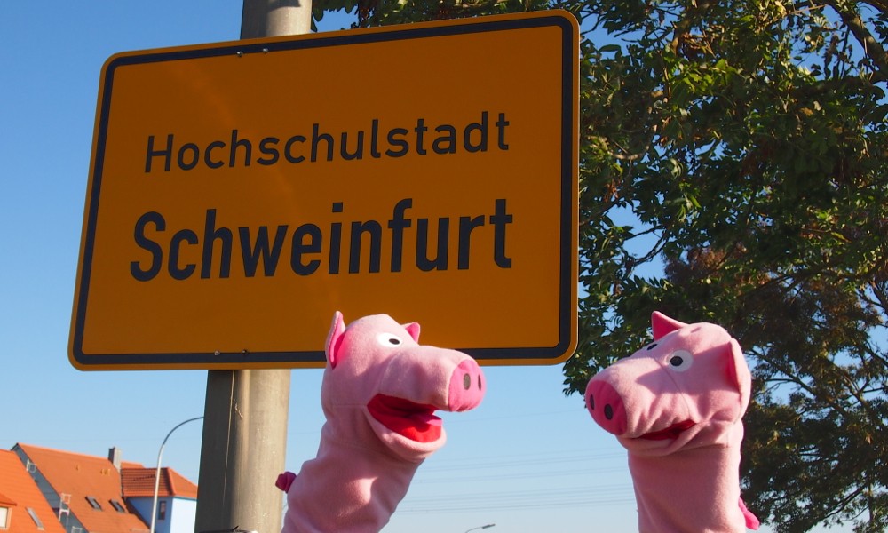 Die Schweine erklären, dass sie aus dem Rheinland kommen.