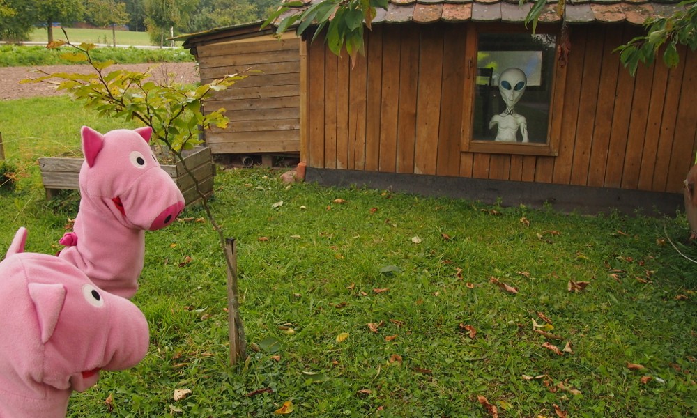Im nächsten Ort überlegen die Schweine, wer hier die Tütschen gereut hat.