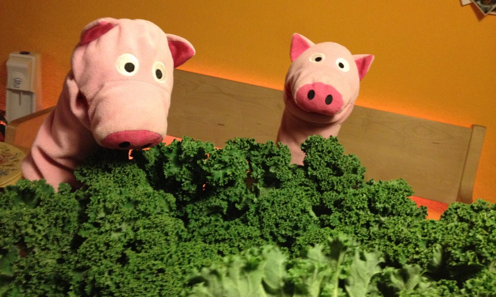 Die Schweine haben auf dem Markt einen großen Sack Grünkohl erstanden und zu Eintopf verarbeitet.