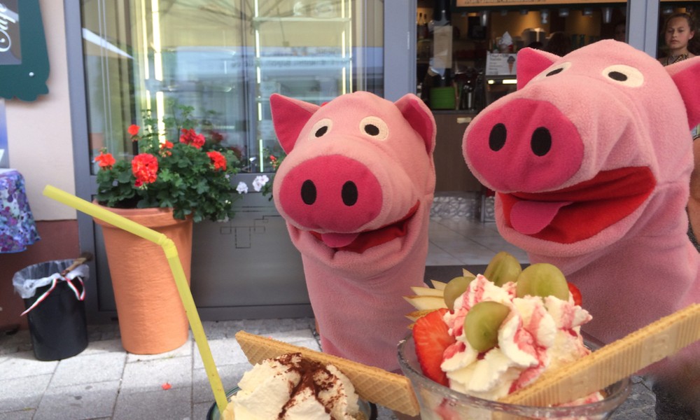 Die Schweine haben ihren Sommerurlaub in Titting verbracht. Natürlich auf dem Bauernhof. Dort gab es jeden Tag Variationen von Kartoffeln.