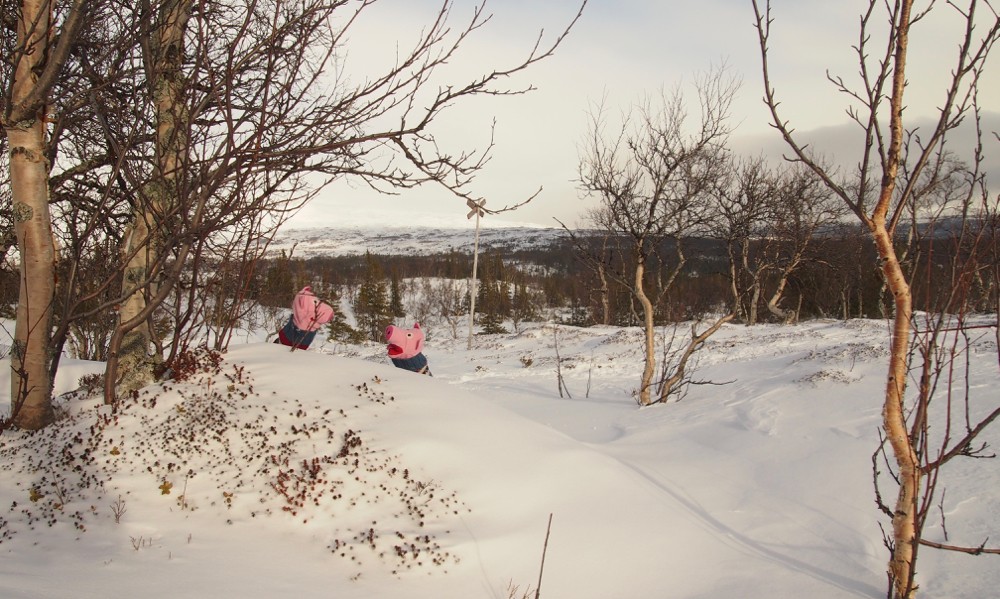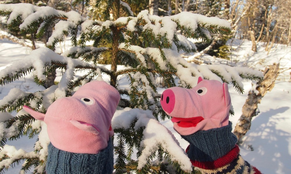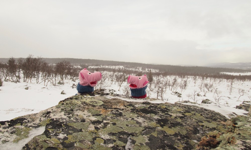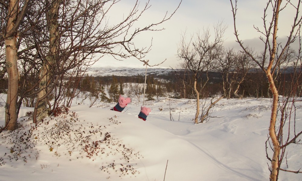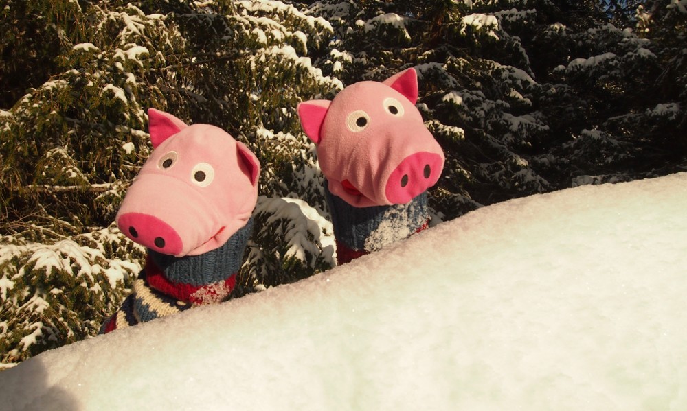 Die Schweine wollten mal einen richtigen Winter sehen und haben sich auf den Weg in die schwedischen Berge gemacht. Da gab es reichliche und herrliche Landschaft, allerdings fiel ein eklatanter Mangel an Kartoffeln auf.
