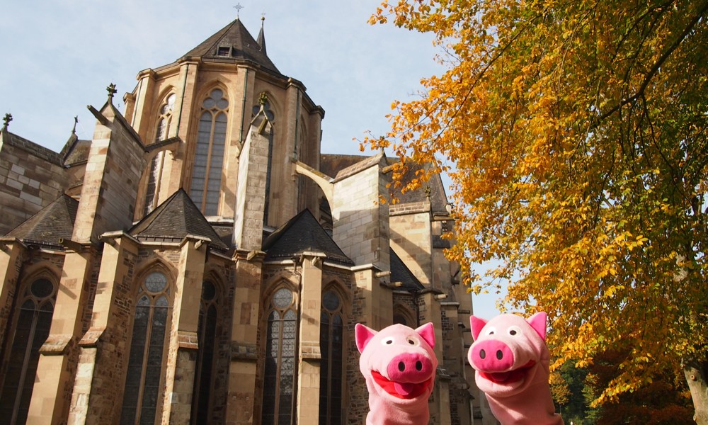 Die Wanderwege im Bergischen sind bestens ausgeschildert. Den Schweinen wird schwindelig.