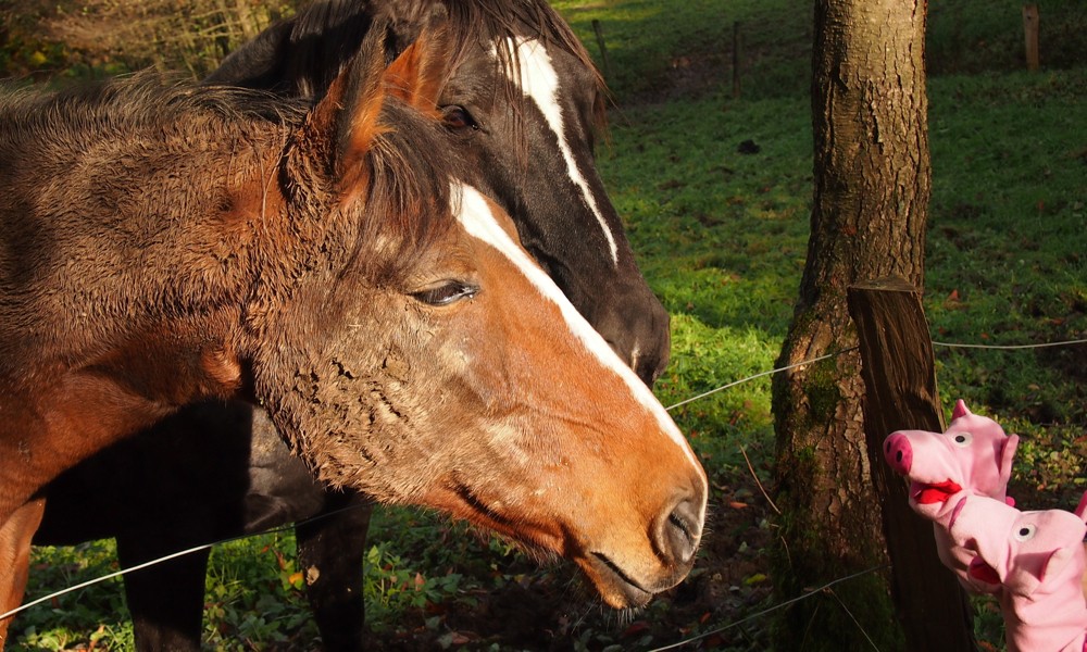 Die Schweine fragen die Pferde, ob sie Kartoffelboviste kennen.