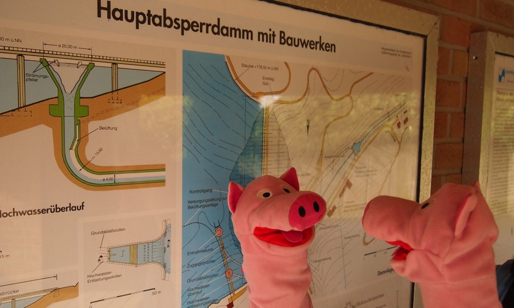 Ebbe in der Dhünntalsperre. Dabei hatten sich die Schweine auf ein Bad gefreut.