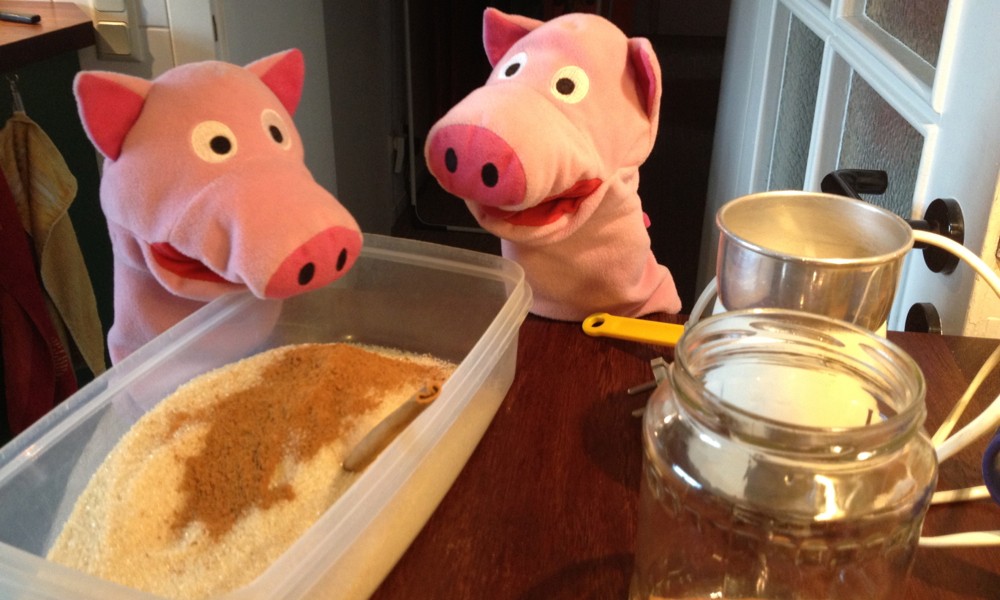 Die Schweine sind stolz auf das Ergebnis und freuen sich auf Kartoffeln mit Pflaumenmus!