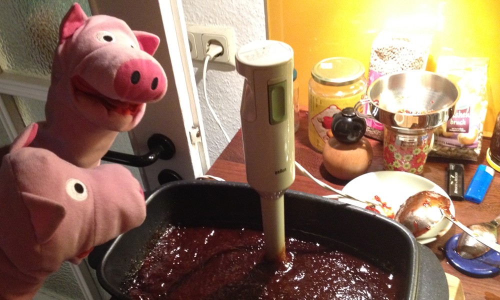 Die Schweine haben die Backofenmethode für's Einkochen gewählt. Das dauert.