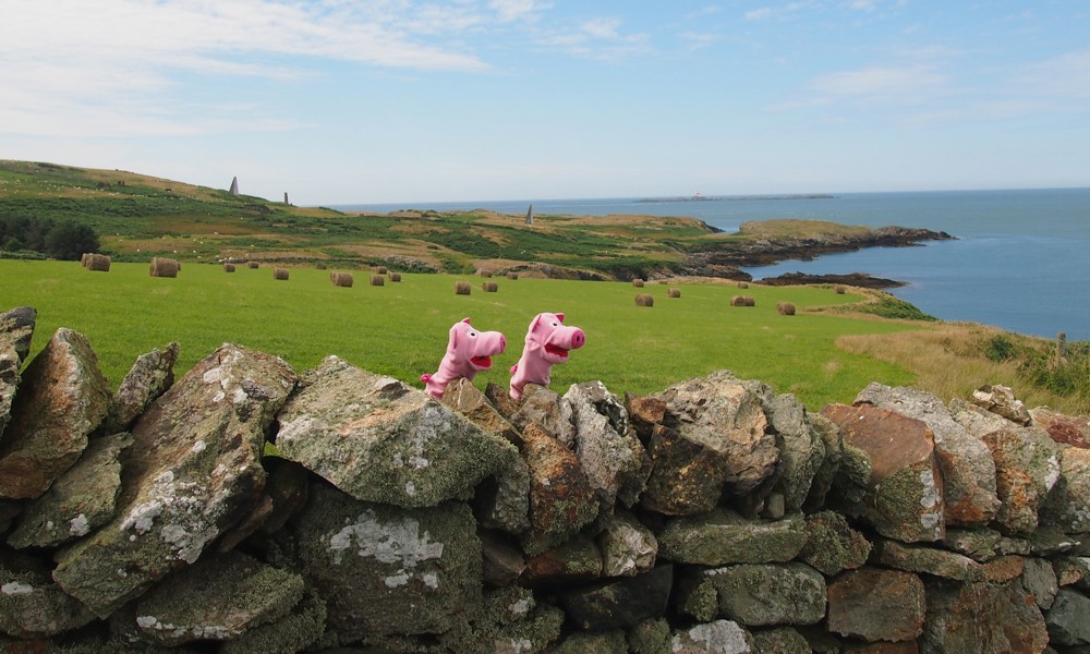Die Schweine waren in Wales unterwegs! Dort gab es allerhand zu sehen: Berge, Meer und Burgen. Die Schweine möchten hier gerne eine Grafschaft eröffnen.