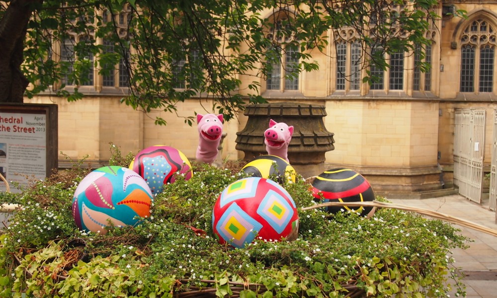 In Chester mischen sich die Schweine unter's touristische Volk.