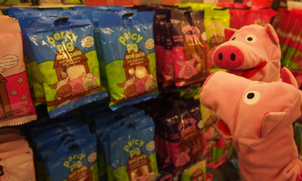 An der Kasse wird gequengelt, denn es gibt "Percy Pig"- Süßigkeiten.
