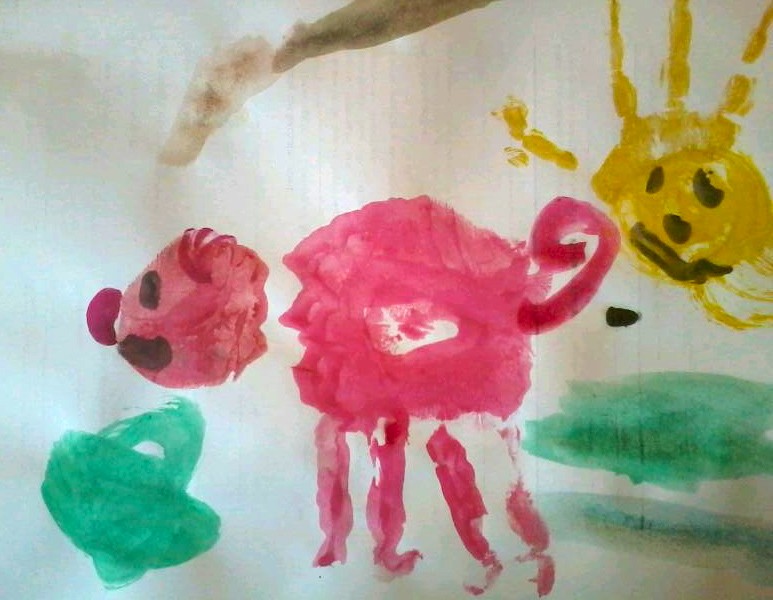 Die Schweine hat ein surrealistisches Bild von Emily erreicht. Ein Schwein wird in mehrere Dimensionen verzerrt und so zum Sinnbild für die Sehnsucht nach einem Leben im Grünen. Die Sonne symbolisiert die Hoffnung auf einen Frühling mit neuen Kartoffeln.