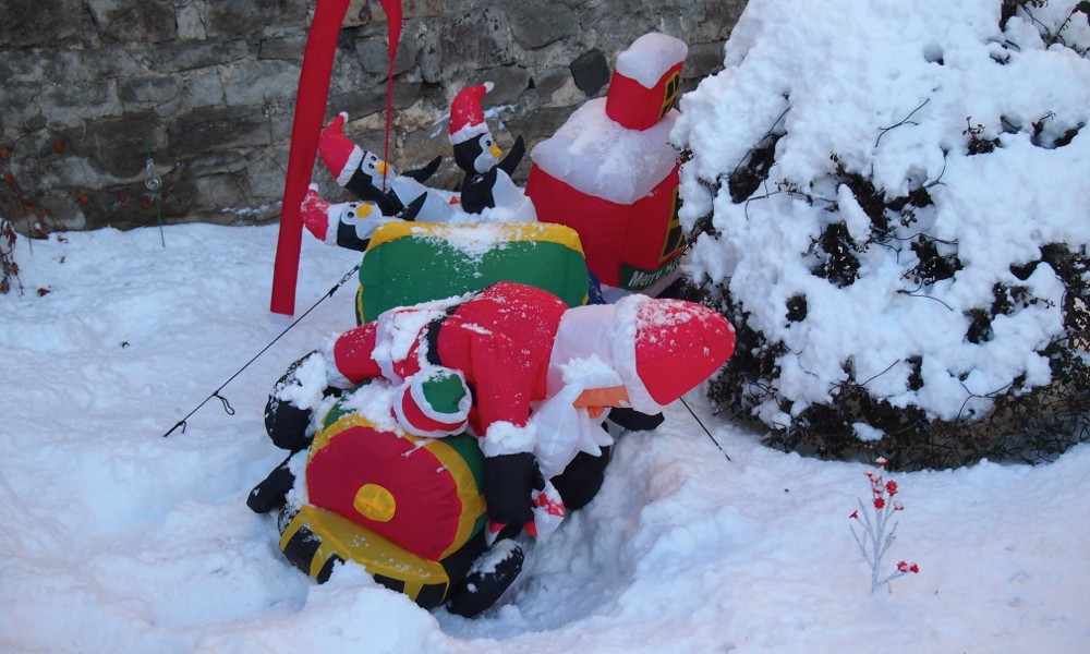 Die Schneemänner sind auch nicht mehr ganz frisch, obwohl die sicher auch aus Polyester sind.