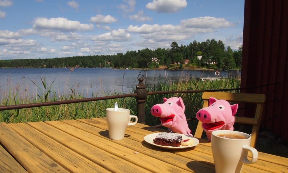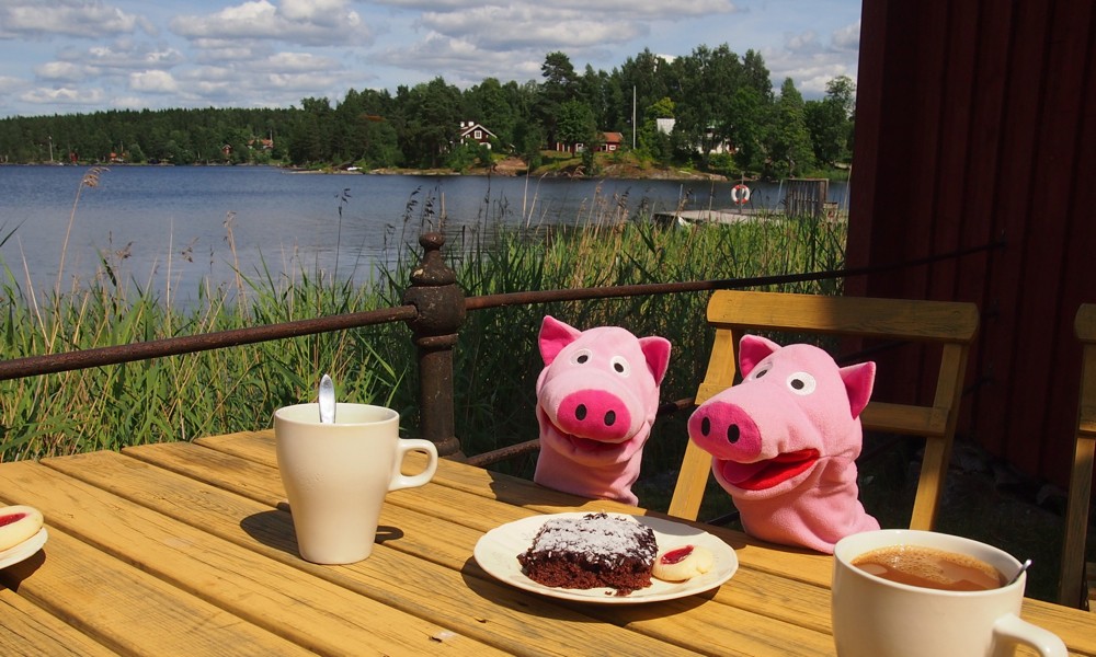 Die Schweine bei Kaffee und Kuchen.