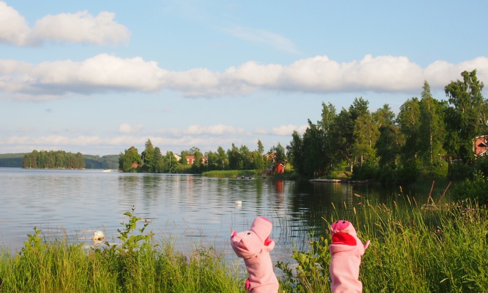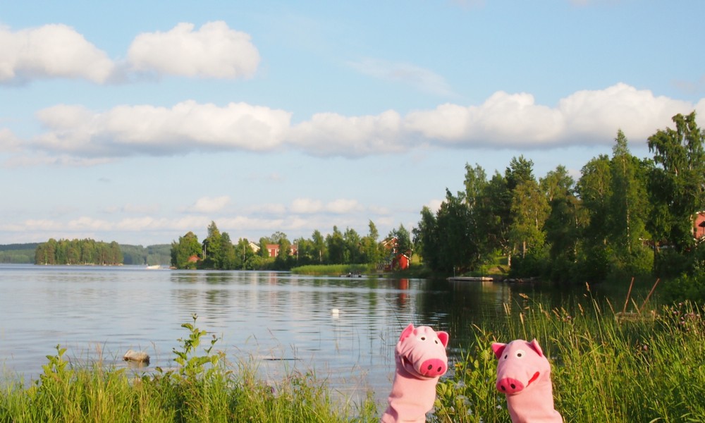 Die Schweine beobachten das schwedische Wolkenspiel.