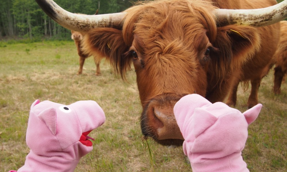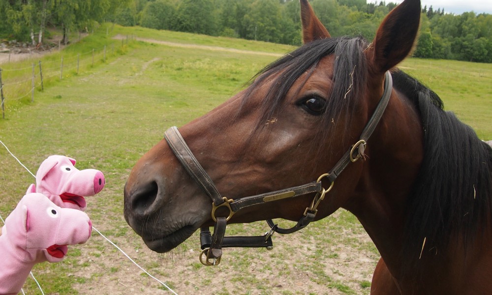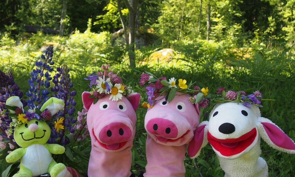 Lotte ist den Schweinen mit dem Hasi zusammen hinterhergefahren, damit alle zusammen Mittsommer feiern können.