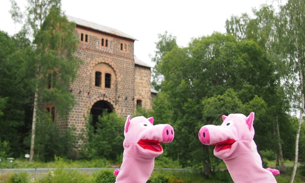 Hier überlegen die Schweine noch, ob Sie den Hochofen im Hintergrund wieder in Betrieb nehmen. Da hat man's denn schön warm.