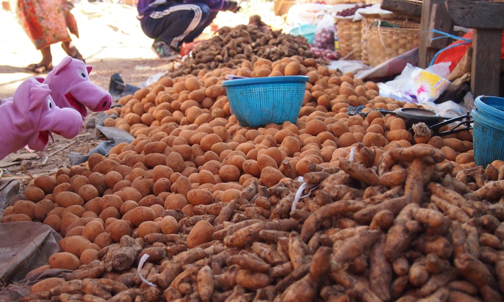 Viele Burmesen tun so, als hätten sie noch nie Schweine auf Reisen gesehen.
