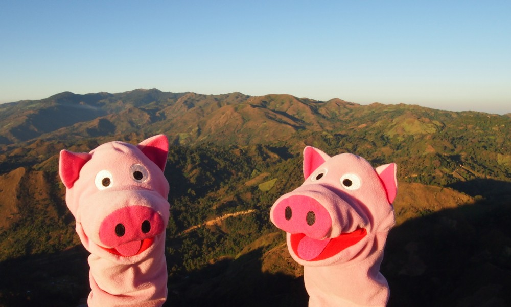 Schweine sind schneller als Drachen, daher konnten sich erstere auf einen Gipfel mit herrlicher Aussicht retten.