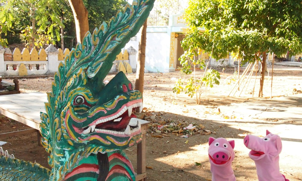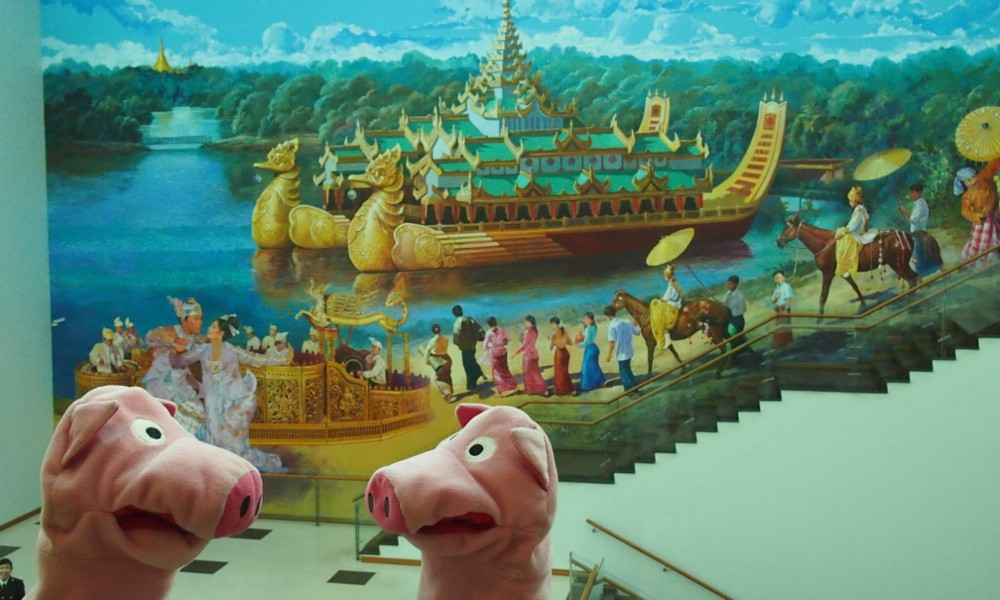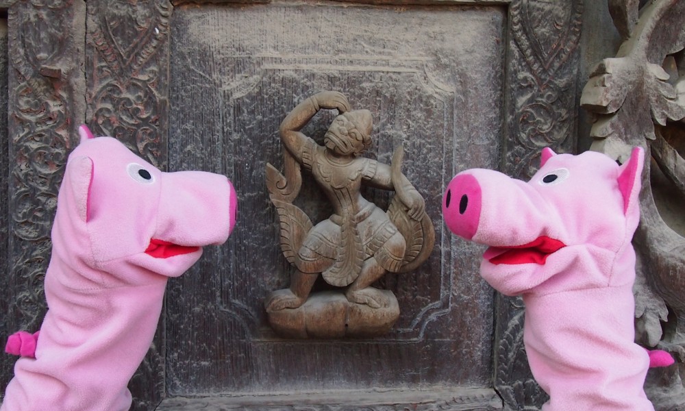 Am Königspalast überlegen die Schweine, ob sie vielleicht auch mal ein paar Verrenkungen einstudieren.