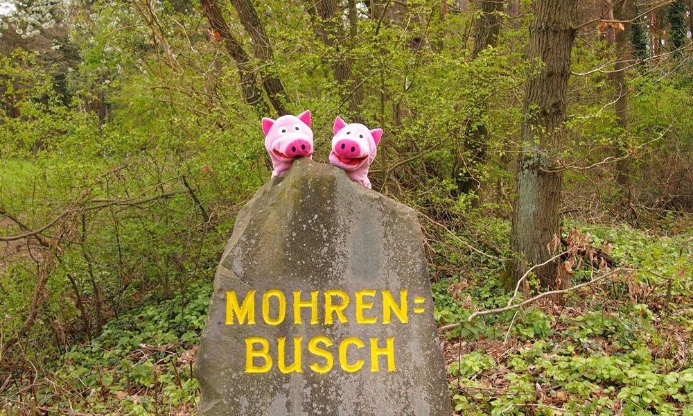 Im nächsten Dorf erzählen die Schweine, dass sie gerade aus Schweinheim kommen.