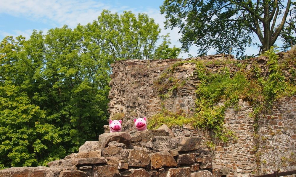 Die Schweine vor Burg Dattenfeld an der Sieg. Das ist doch standesgemäß!