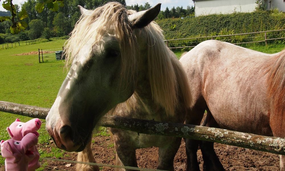 Hier bewundern die Schweine die schicken Schuhe eines Pferdes. Sehr elegant.